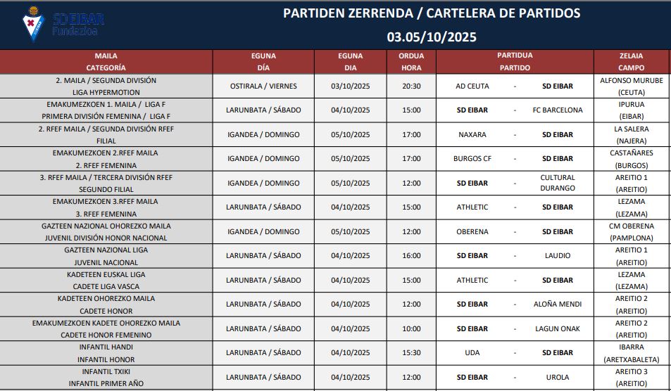 Asteburuko partiden zerrenda (urriak 3-4)